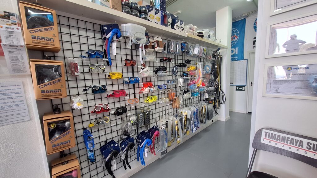 Disponemos de una tienda con productos de las mejores marcas de buceo y un taller certificado para mantenimiento y reparación de equipos. Todo en el mismo centro.