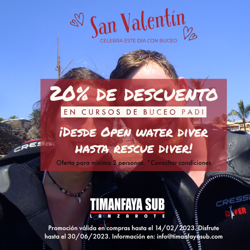 Celebra el día de los enamorados regalando buceo. En Timanfaya Sub hemos preparado para ti estas ofertas especiales, y así celebrar el amor bajo el agua.